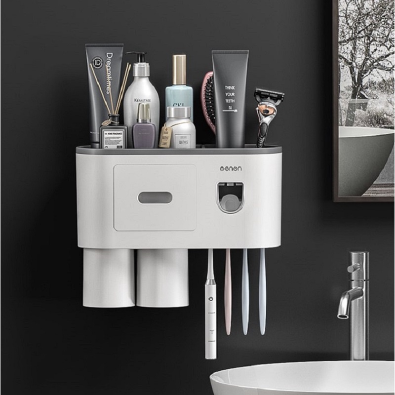 - Bộ nhả kem đánh răng tự động có thiết kế thêm 1 ngăn kéo để đồ rất tiện lợi.