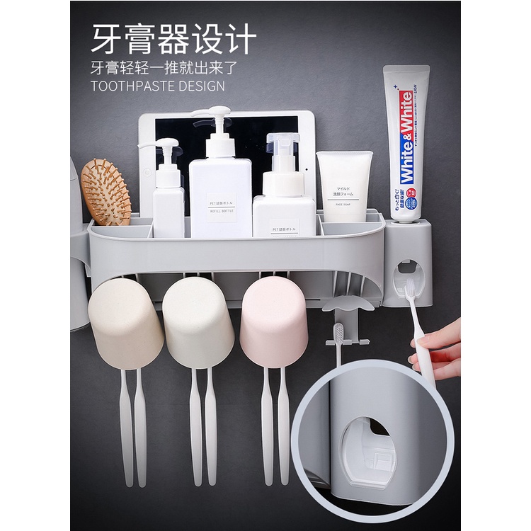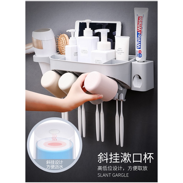 Giới thiệu Bộ Nhả Kem Đánh Răng Tự Động, Kệ Để Đồ Phòng Tắm Kèm 4 Cốc