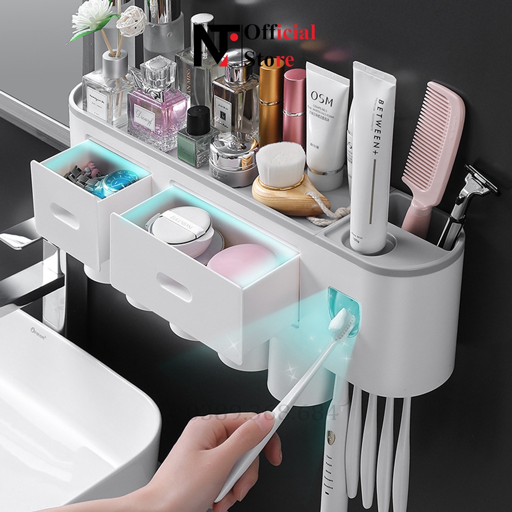 Bộ Nhả Kem Đánh Răng Tự Động, Kệ Để Đồ Phòng Tắm Cao Cấp - NT Store