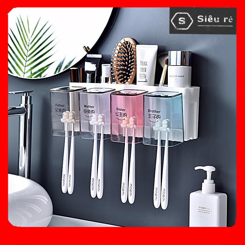 Nhà cửa & Đời sống > Đồ dùng phòng tắm > Kệ đựng bàn chải, kệ nhả kem đánh răng || Bộ Nhả Kem Đánh Răng Tự Động, Kệ Treo Để Đồ Phòng Tắm Cao Cấp Tặng Kèm 4 Ly (MSP TAM83)Còn hàng