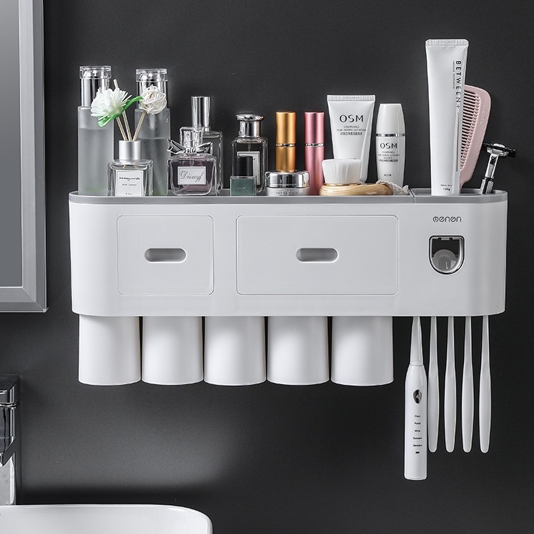 Bộ Nhả Kem Đánh Răng Tự động, Kệ Đựng Đồ Nhà Tắm OENON (Tặng Miếng Dán)
