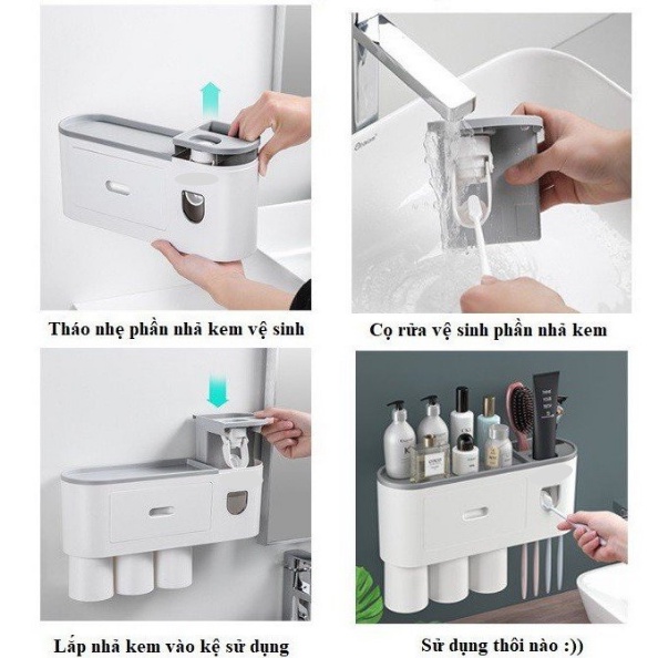 Giới thiệu Bộ nhả kem đánh răng tự động kèm cốc kết hợp treo bàn chải. Kệ nhả kem đánh răng kiêm kệ để đồ phòng tắm cao cấp