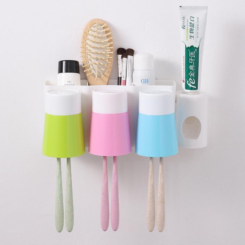 Bộ Nhả Kem Đánh Răng Tự Động Kẹp Bàn Chải 3 Cốc – đồ dùng phòng tắm tiện lợi