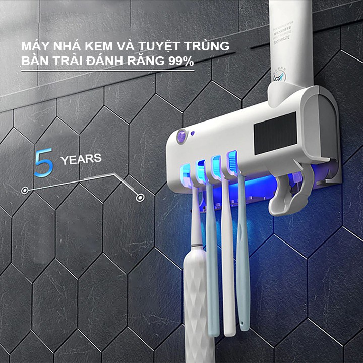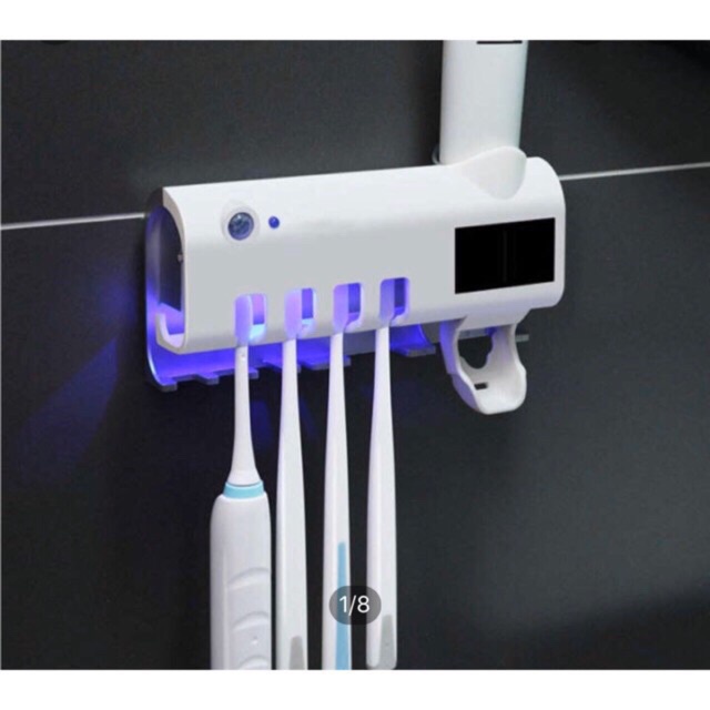 Bộ nhả kem đánh răng tự động kết hợp giá treo bàn chải có mắt cảm ứng hồng ngoại khử 99% vi khuẩn - bán cả thế giới