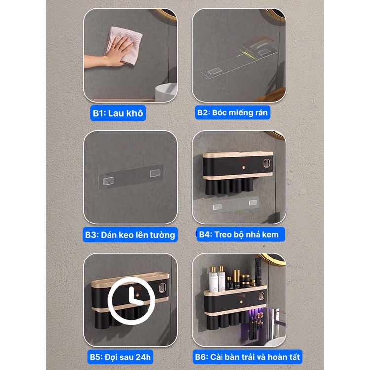 THÔNG TIN SẢN PHẨM :Bộ Nhả Kem Đánh Răng Tự Động Khử Trùng Tia Cực Tím, Kệ Để Đồ Phòng Tắm Cao Cấp ( Tặng Kèm Miếng Dán )