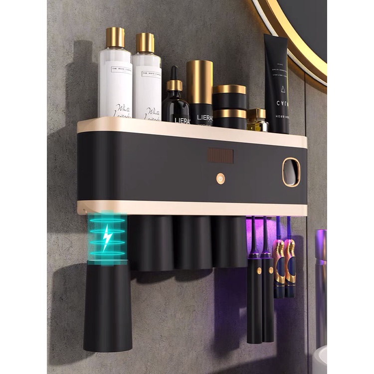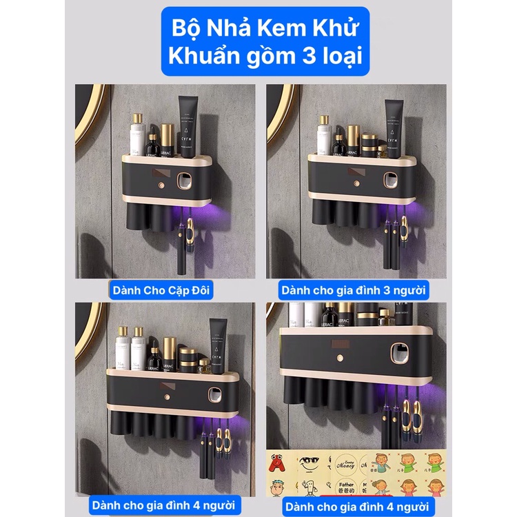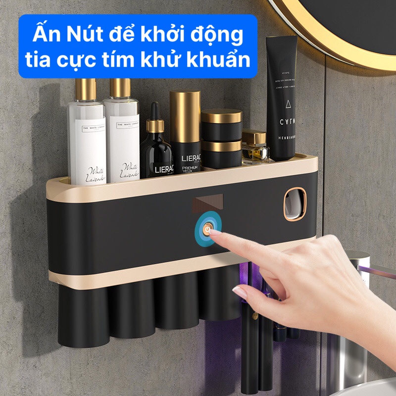 Bộ Nhả Kem Đánh Răng Tự Động Khử Trùng Tia Cực Tím, Kệ Để Đồ Phòng Tắm Cao Cấp ( Tặng Kèm Miếng Dán )