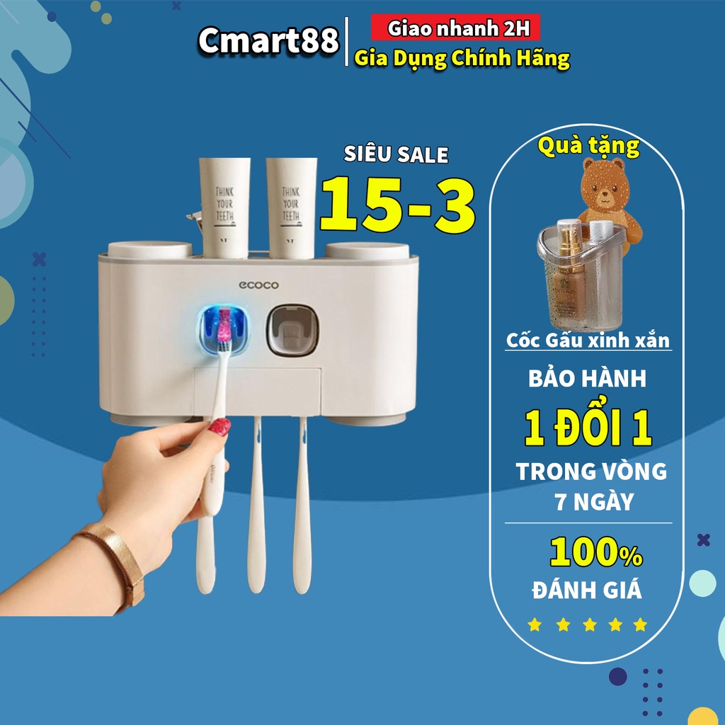 Nhà cửa & Đời sống > Đồ dùng phòng tắm > Kệ để đồ phòng tắm || Nhả kem đánh răng tự động ECOCO dán tường chịu nước siêu chắc chắn, Bộ treo bàn chải đánh răng cao cấp tặng kèm cốc gấuCòn hàng