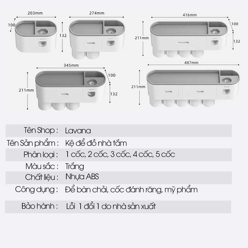 Tên sản phẩm: Bộ nhả kem đánh răng tự động, kệ nhà tắm đa năng kèm cốc
