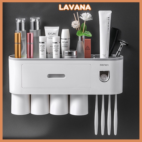 Bộ Nhả Kem Đánh Răng Tự Động Oenon - Kệ Để Đồ Phòng Tắm Đa Năng. Lavana