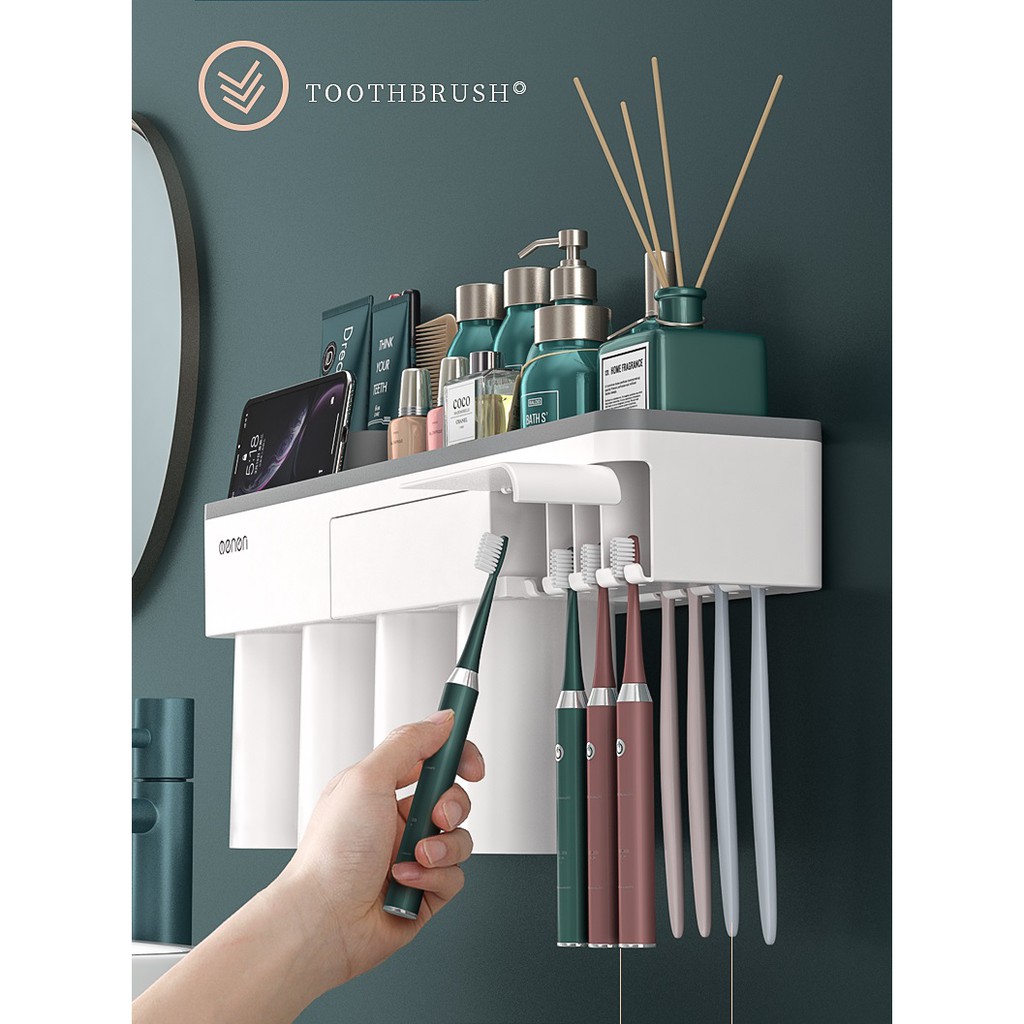 Nhà Cửa & Đời Sống > Đồ dùng phòng tắm > Phụ kiện nhà tắm, nhà vệ sinh || Bộ Nhả Kem Đánh Răng Tự Động Oenon - Kệ treo bản chải kem đánh răng nhà tắm kèm cốc lắp đặt dán tườngCòn hàng