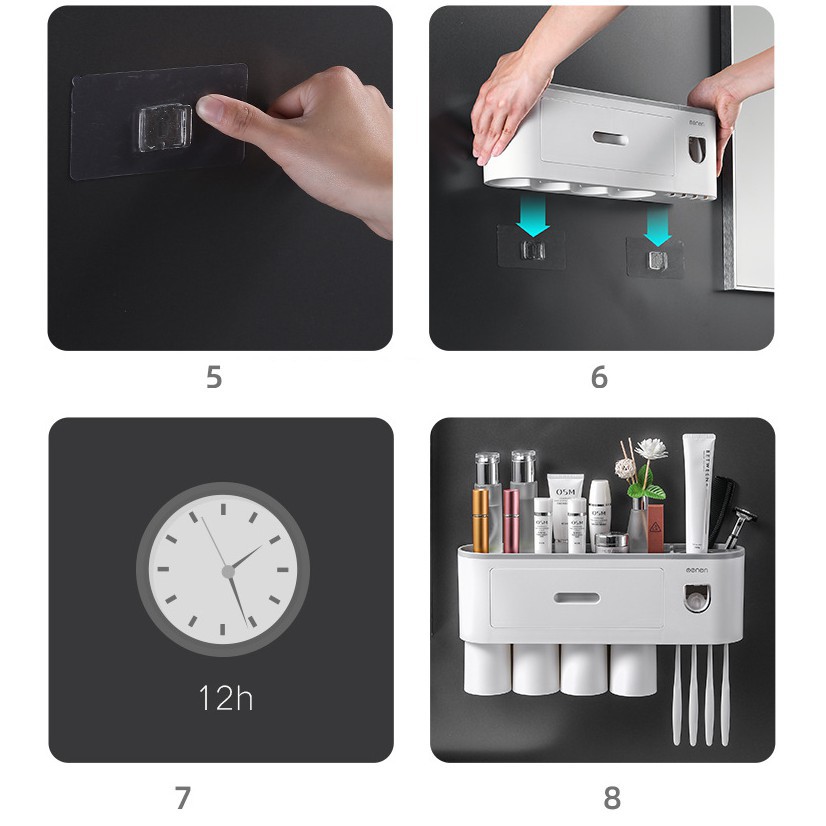 Giới thiệu Bộ Nhả Kem Đánh Răng Tự Động OENON, Kệ Để Bàn Chải Đánh Răng Kèm Cốc Hút Từ Tính ( 3 Cốc, 4 Cốc)