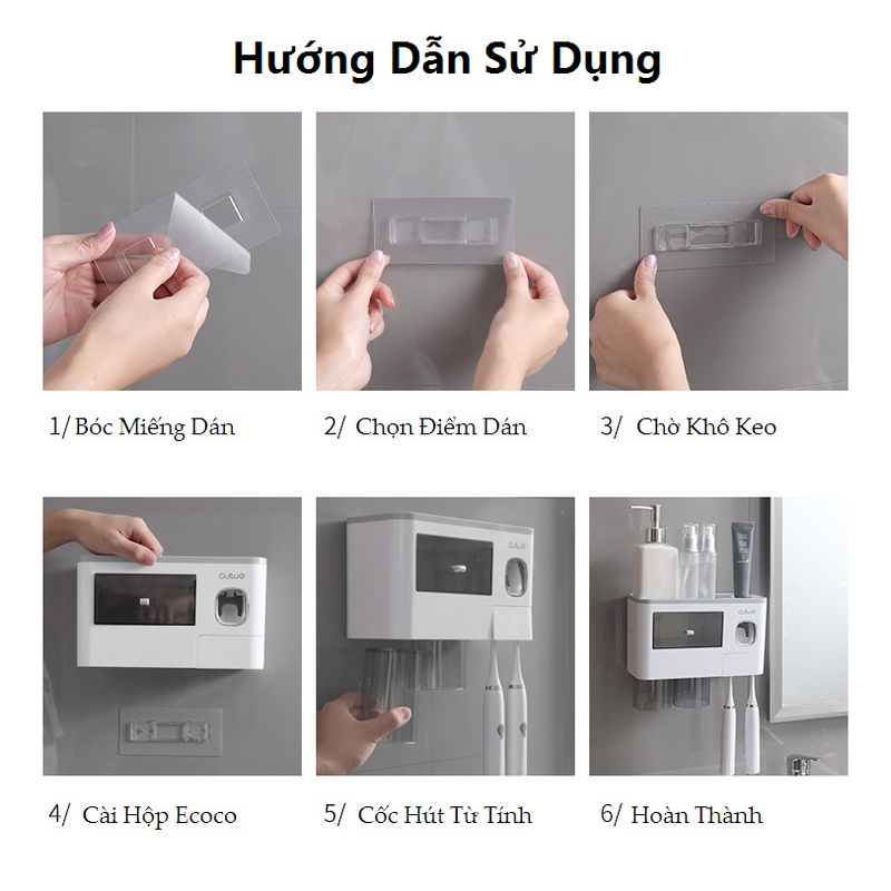 Giới thiệu Bộ Nhả Kem Đánh Răng Tự Động OENON Dán Tường, Có Cốc Hút Từ Tính