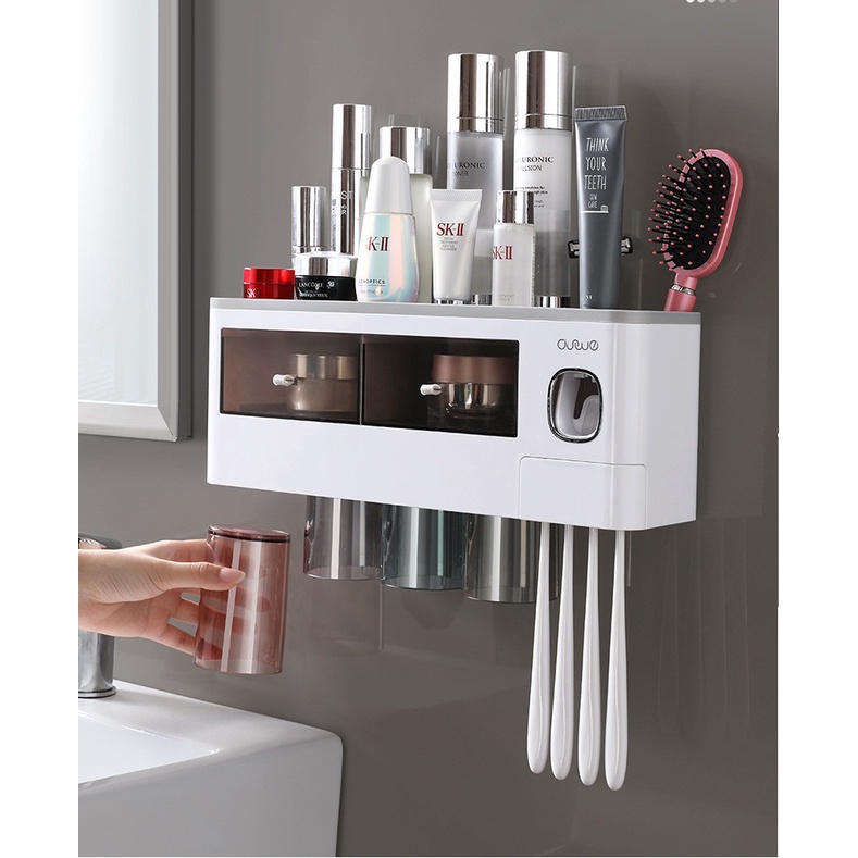 Nhà cửa & Đời sống > Đồ dùng phòng tắm > Kệ đựng bàn chải, kệ nhả kem đánh răng || Bộ Nhả Kem Đánh Răng Tự Động OENON Dán Tường, Có Cốc Hút Từ TínhCòn hàng