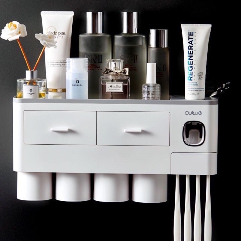 Bộ nhả kem đánh răng tự động OENON từ tính thông minh, tiện dụng - Kèm Cốc - Kệ để bàn chải đánh răng, Kệ để đồ nhà tắm