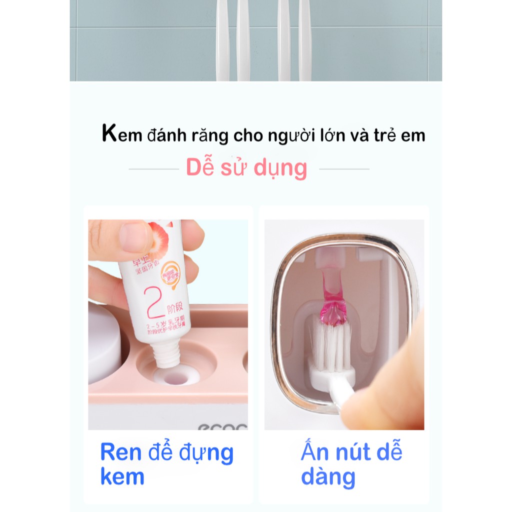 Giới thiệu Bộ Nhả Kem đánh răng và Để Bàn Chải ECOCO kèm 4 cốc nhựa