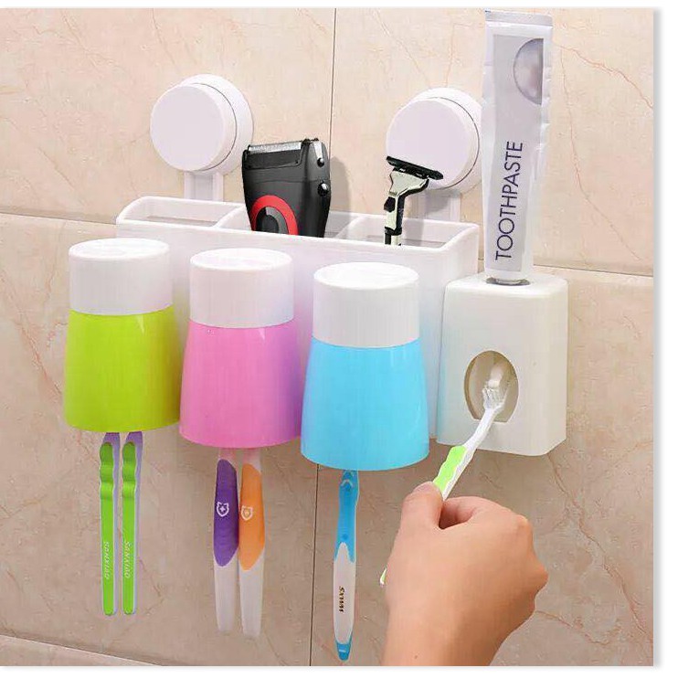 Nhà Cửa & Đời Sống > Đồ dùng phòng tắm > Kệ để đồ phòng tắm || Nhả Kem - nhả kem đánh răng 3 cốc - nhả kem đánh răng có khe để đồCòn hàng