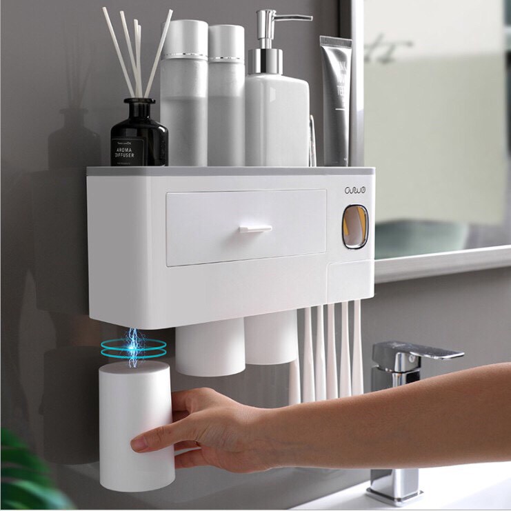 Bộ Nhả Kem Nhà Tắm Thông Minh OENON Kèm 2 Cốc,3 Cốc,4 Cốc Hút Từ Tính Có Nhả Kem Đánh Răng Tự Động