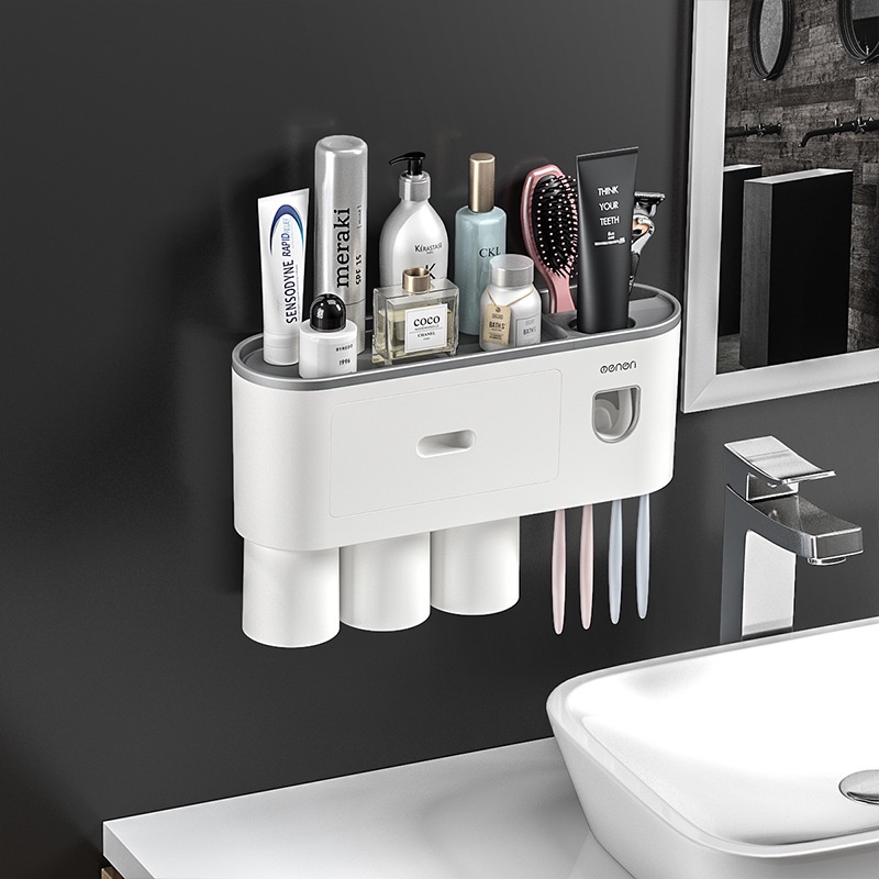 Bộ Nhả Kem Treo Bàn Chải Đánh Răng OENEN, Kệ Để Để Đồ Nhà Tắm Dán Tường Siêu Chắc- Bảo Hành Chính Hãng