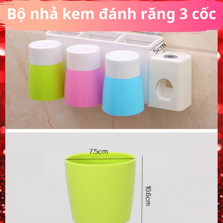Bộ nhả kem tự động gắn tường kèm 3 cốc tiện lợi - dụng cụ nhả kem đánh răng