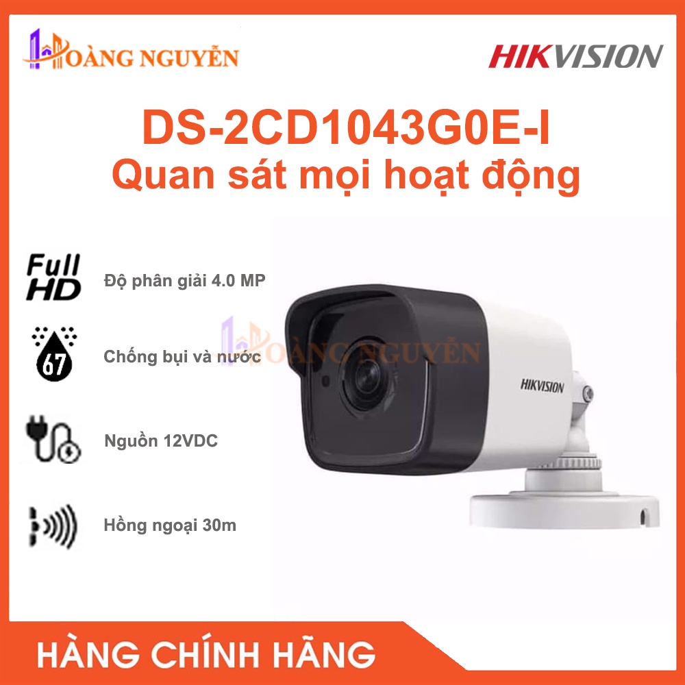 Giới thiệu [NHÀ PHÂN PHỐI] Camera quan sát Hikvision DS-2CD1043G0E-I 4.0 Megapixel - Tầm Xa Hồng Ngoại 30m, Chuẩn Nén H265+