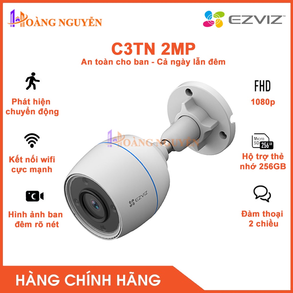 Cameras & Flycam > Camera giám sát > Camera giám sát kết nối internet || [NHÀ PHÂN PHỐI] Camera Wifi Ngoài Trời, AI Nhận Diện Người Và Vật Ezviz C3TN (2MP, H.265, Color)Còn hàng