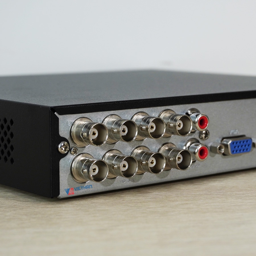 . Đầu ghi hình Mini HD 5 in 1 (CVI / TVI / AHD / ANALOG / IP) 8 kênh + 2 kênh IP. Khoảng cách kết nối từ camera lên đến 1200m (đối với camera 1.0Mp và 1.3Mp khi sử dụng cáp 75-5), 800m (đối với camera 2.0 Mp khi sử dụng cáp 75-5)