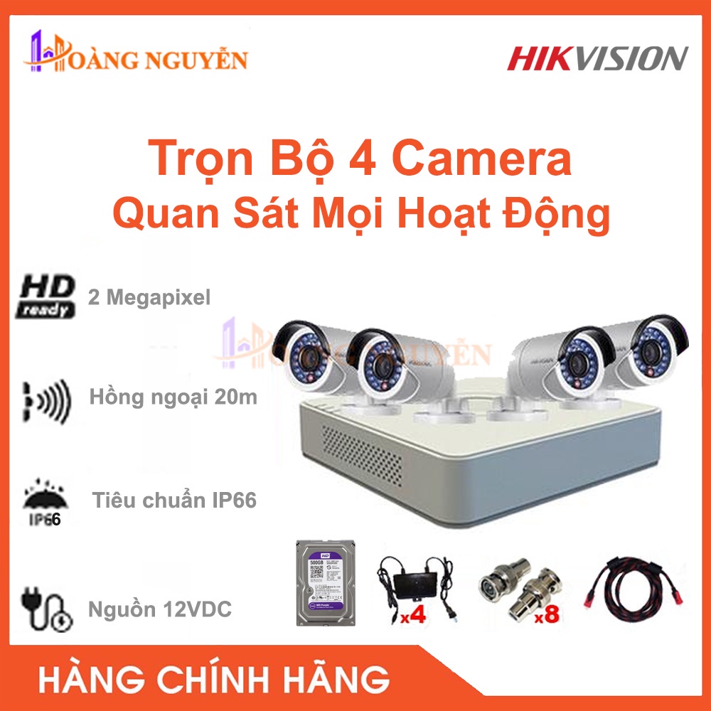 [NHÀ PHÂN PHỐI] Trọn bộ 4 Camera Hikvision 2M DS-2CE16D0T-IR - Camera Full HD Ngoài Trời Thân Sắt, Độ Nét Cao, Giá Rẻ