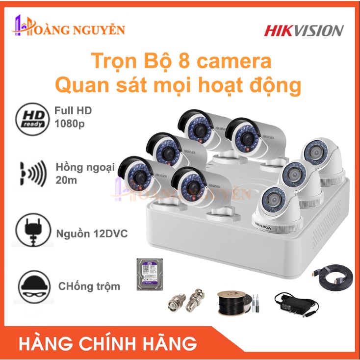 [NHÀ PHÂN PHỐI] Trọn Bộ 8 Camera Hikvision 2MP FULL HD 1080P - Bộ 4/6/8 Camera Đầy Đủ Phụ Kiện, Không Phát Sinh Chi Phí
