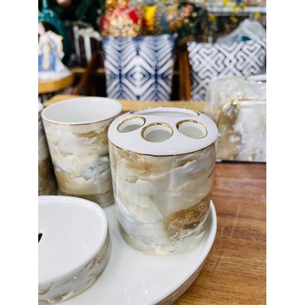 Nhà cửa & Đời sống > Đồ dùng phòng tắm > Kệ để đồ phòng tắm || Bộ nhà tắm sứ cao cấp hoạ tiết vân đá kèm khayCòn hàng