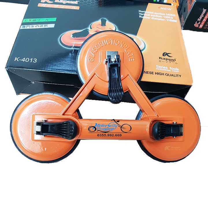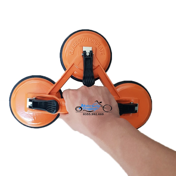 Nhấc Kính, Nhấc Gạch, Hít Kính, Hít gạch 3 ChấuHít và giữ được vật liệu lên tới 150kg. Chuyên dùng để nâng nhấc lắp ghép đá,tấm kính, ốp lát gạch men,tấm kim loại.... Đế hít được làm bằng cao cu chống dầu cao cấp KAPUSI. Thân tay hít được làm bằng thép hợp kim và mạ sơn tĩnh điện chống ri và ăn mòn