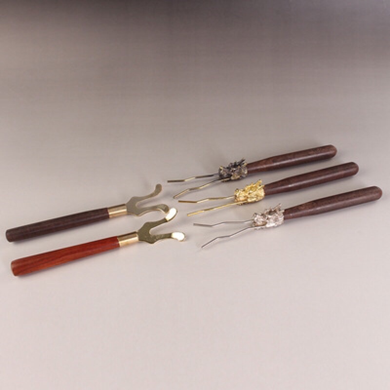 Cây nhắc nắp ấm- đầu đồng, cán gỗ MunCây nhắc nắp ấm sắt- tránh phỏng tay.