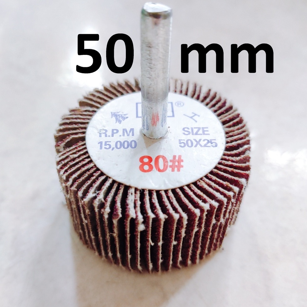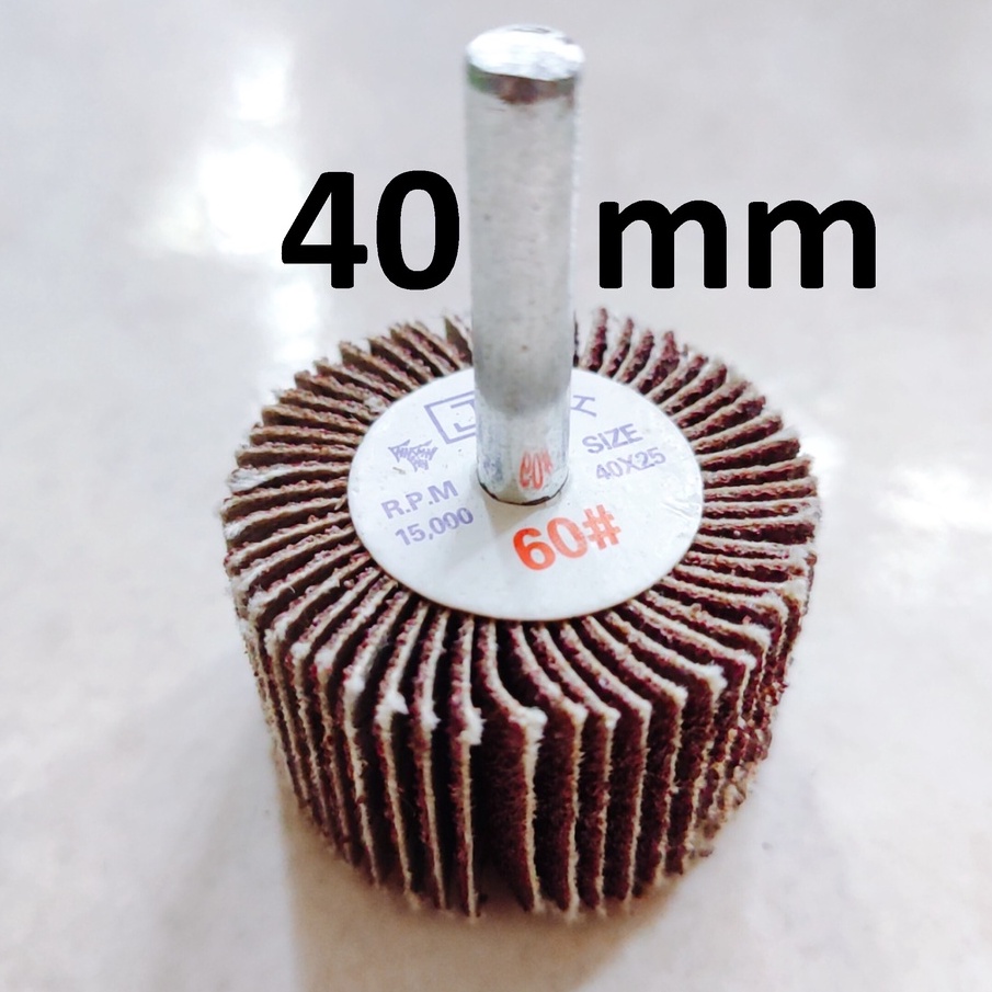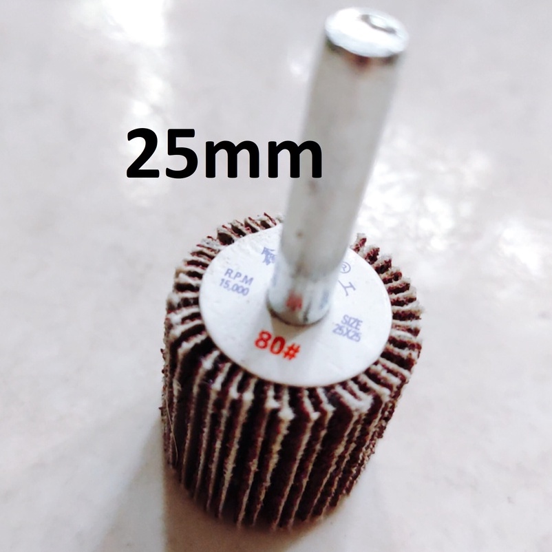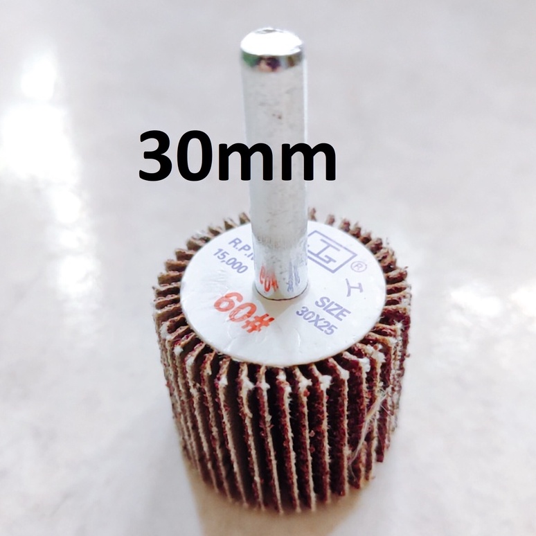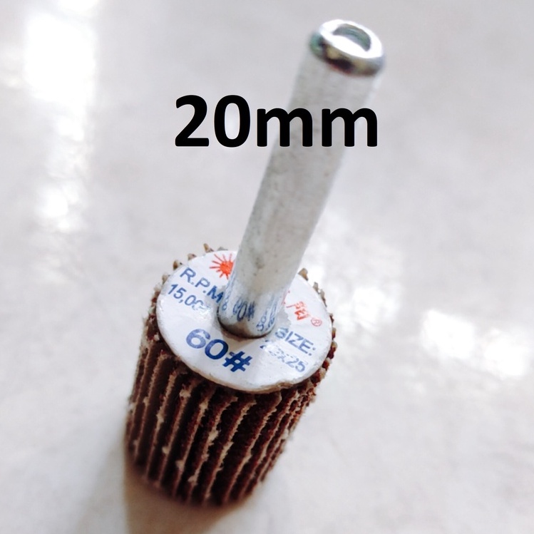 Nhà cửa & Đời sống > Dụng cụ & Thiết bị tiện ích > Dụng cụ > Giấy nhám, máy chà nhám và phụ kiện || Nhám chuôi hình trụ đủ size 20-50mm, nhám cà lem trà gỗ, kim loại, chuôi 6mmCòn hàng