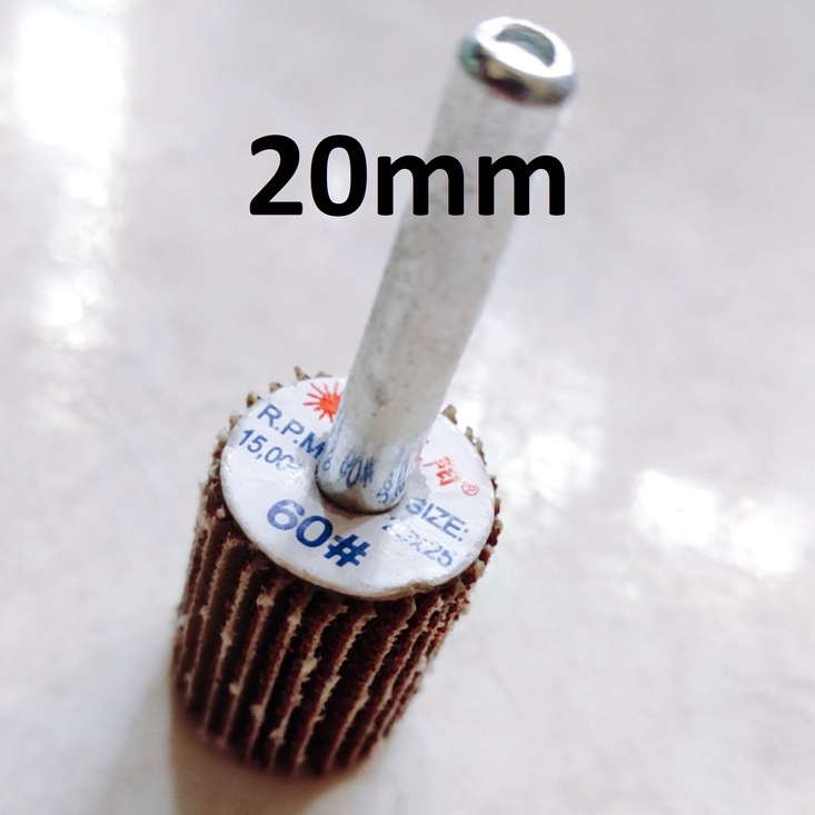 Nhà cửa & Đời sống > Dụng cụ & Thiết bị tiện ích > Dụng cụ > Giấy nhám, máy chà nhám và phụ kiện || Nhám chuôi hình trụ size 20mm, nhám cà lem trà gỗ, kim loại, chuôi 6mmCòn hàng
