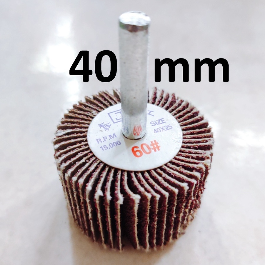 Nhà cửa & Đời sống > Dụng cụ & Thiết bị tiện ích > Dụng cụ > Giấy nhám, máy chà nhám và phụ kiện || Nhám chuôi hình trụ size 40mm, nhám cà lem trà gỗ, kim loại, chuôi 6mmCòn hàng
