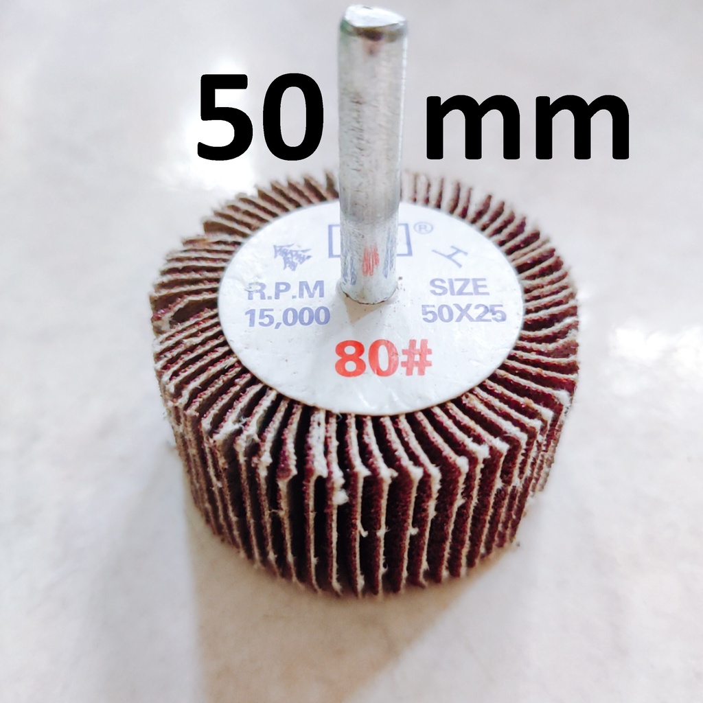 Nhà cửa & Đời sống > Dụng cụ & Thiết bị tiện ích > Dụng cụ > Giấy nhám, máy chà nhám và phụ kiện || Nhám chuôi hình trụ size 50mm, nhám cà lem trà gỗ, kim loại, chuôi 6mmCòn hàng