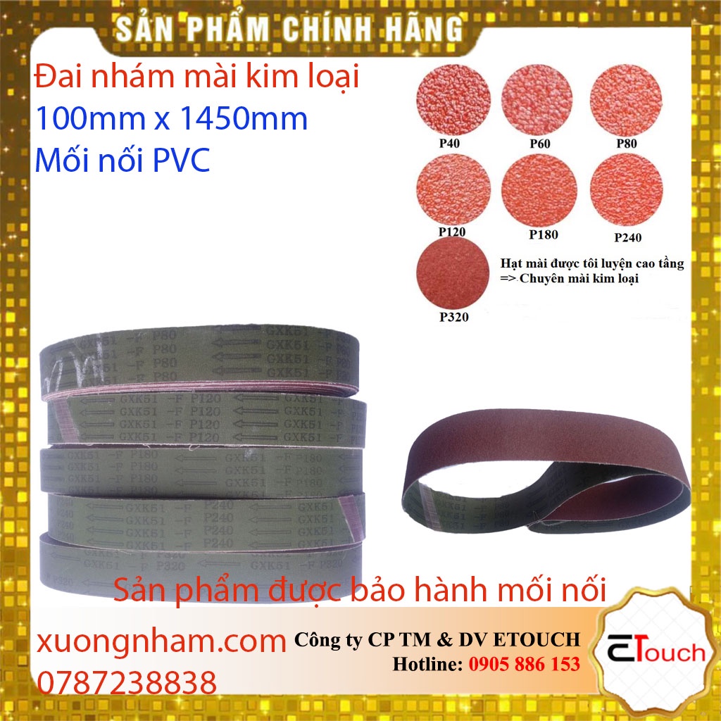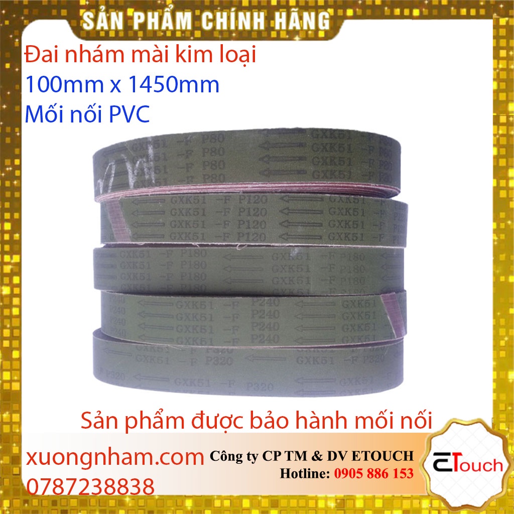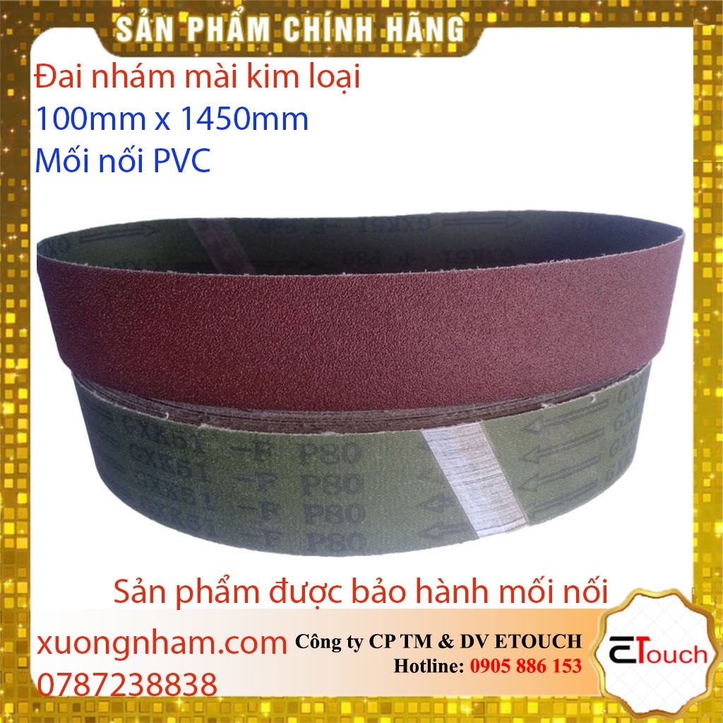 Nhám vòng 100mm x 1450mm, đai nhám vòng mài kim loại, cao su, gỗ, mối nối PVC có bảo hành
