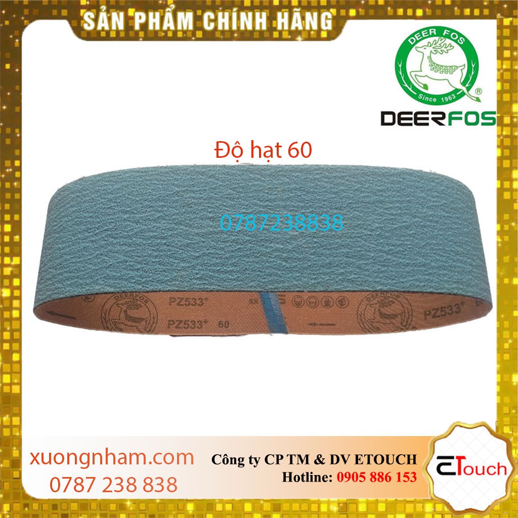 Nhà cửa & Đời sống > Dụng cụ & Thiết bị tiện ích > Dụng cụ > Giấy nhám, máy chà nhám và phụ kiện || Nhám vòng 100mm x 915mm, đai nhám vòng hiệu con nai, Giấy nhám, Vải nhám Deerfos PZ533 Zirconia 100mm x 915mm P60Còn hàng