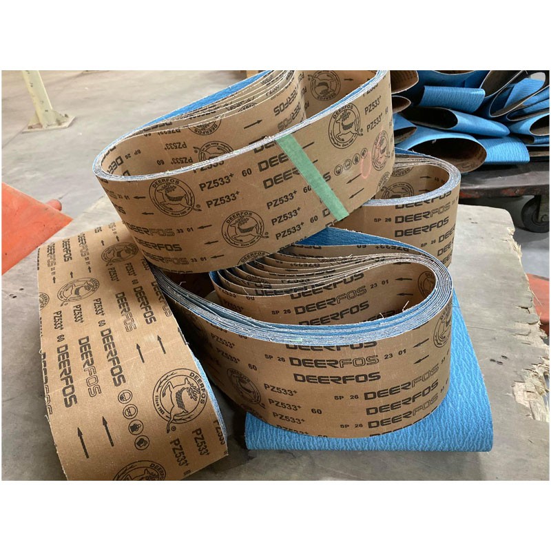 Giới thiệu Nhám vòng 100mm x 915mm, đai nhám vòng hiệu con nai, Giấy nhám, Vải nhám Deerfos PZ533 Zirconia 100mm x 915mm P60