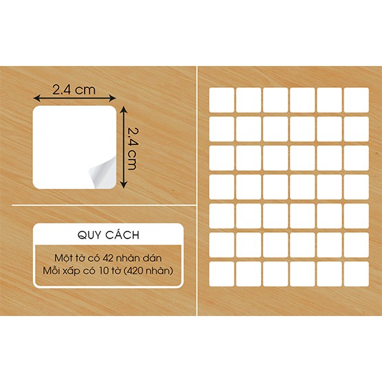 + 2.4x2.4cm: 1 tờ là 42 nhãn