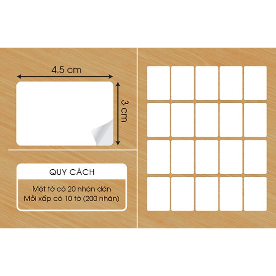 + 3x4.5cm: 1 tờ là 20 nhãn