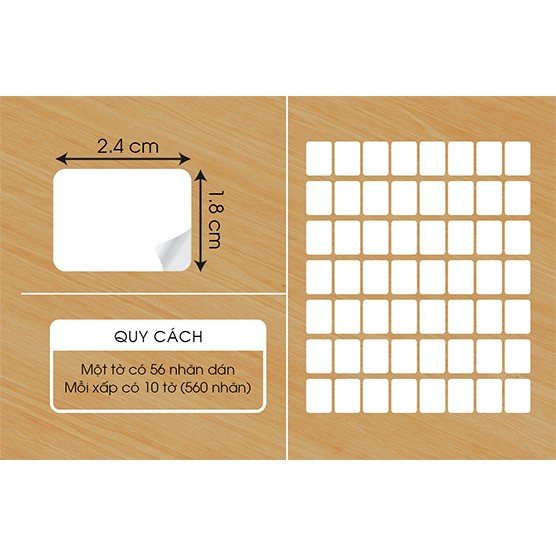 + 2.4x1.8cm: 1 tờ là 56 nhãn