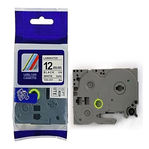 Nhãn in TZ2-231 dùng cho máy Brother PT-E110 - Chữ đen trên nền trắng 12mm x 8m