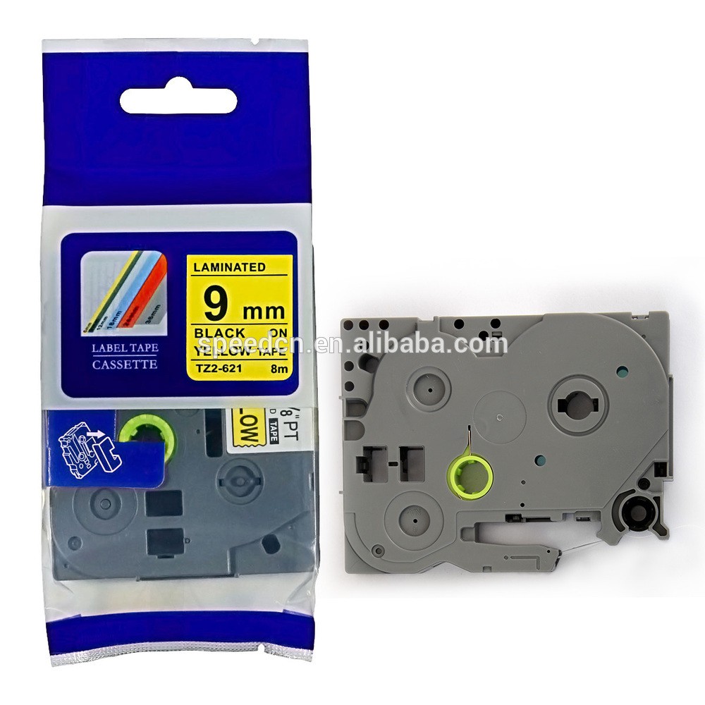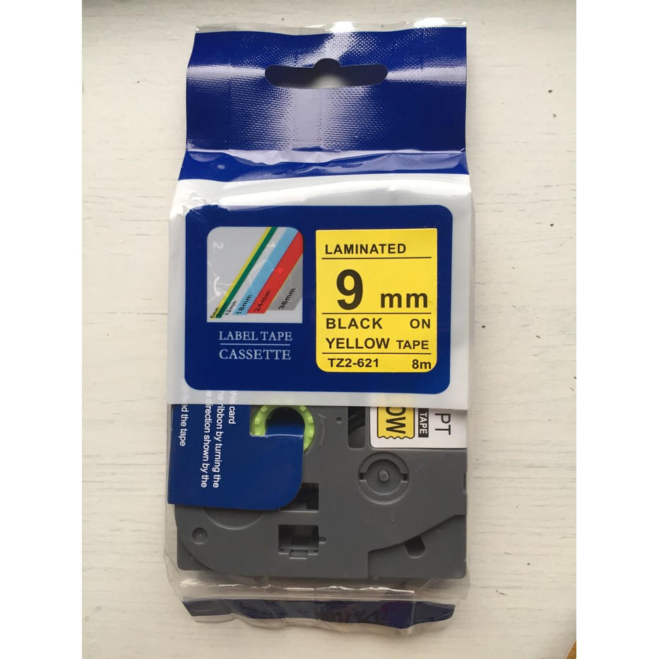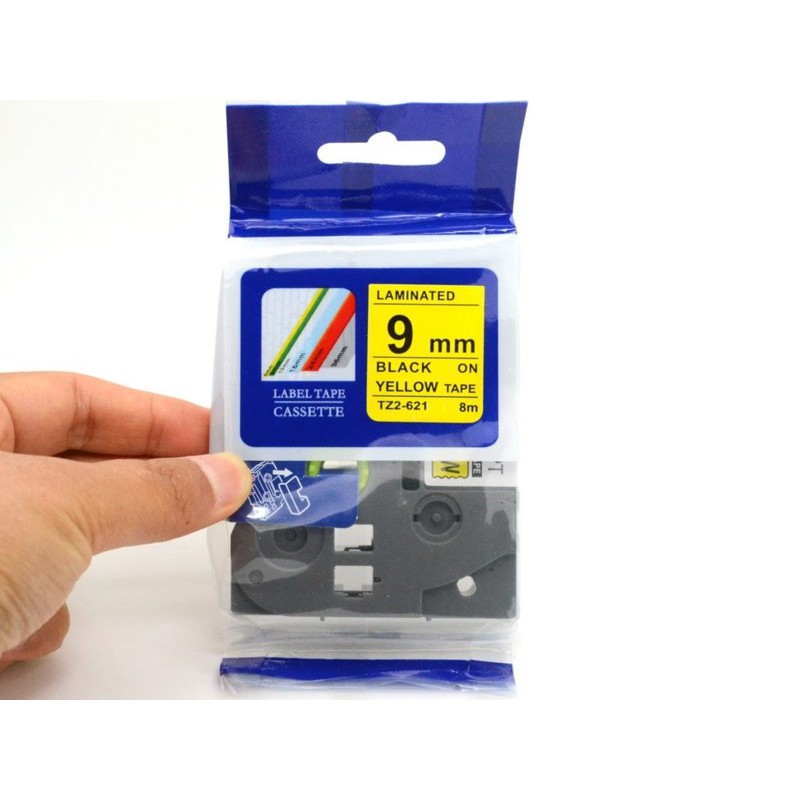 Nhãn in TZ2-621 - Chữ đen trên nền vàng 9mm (Loại siêu dẻo)Kích thước : rộng 9mm, cuộn dài 8m