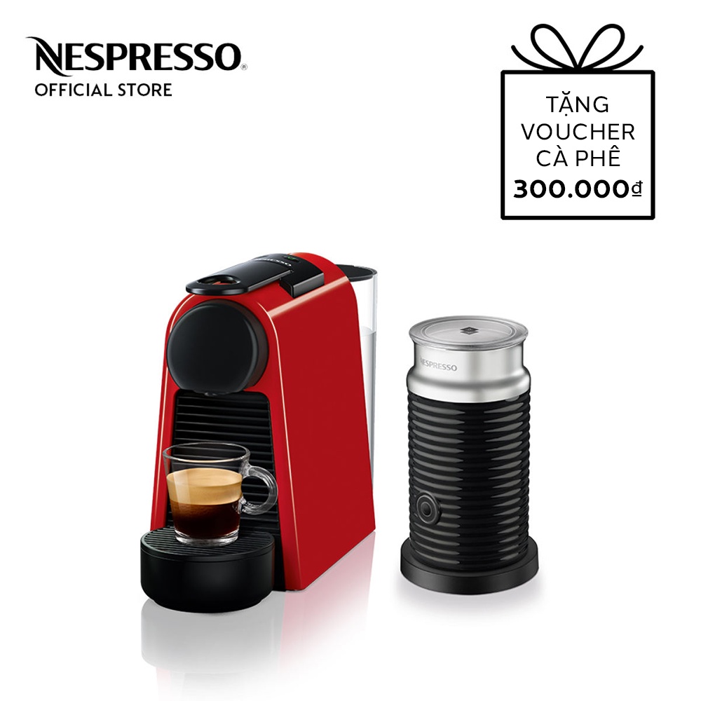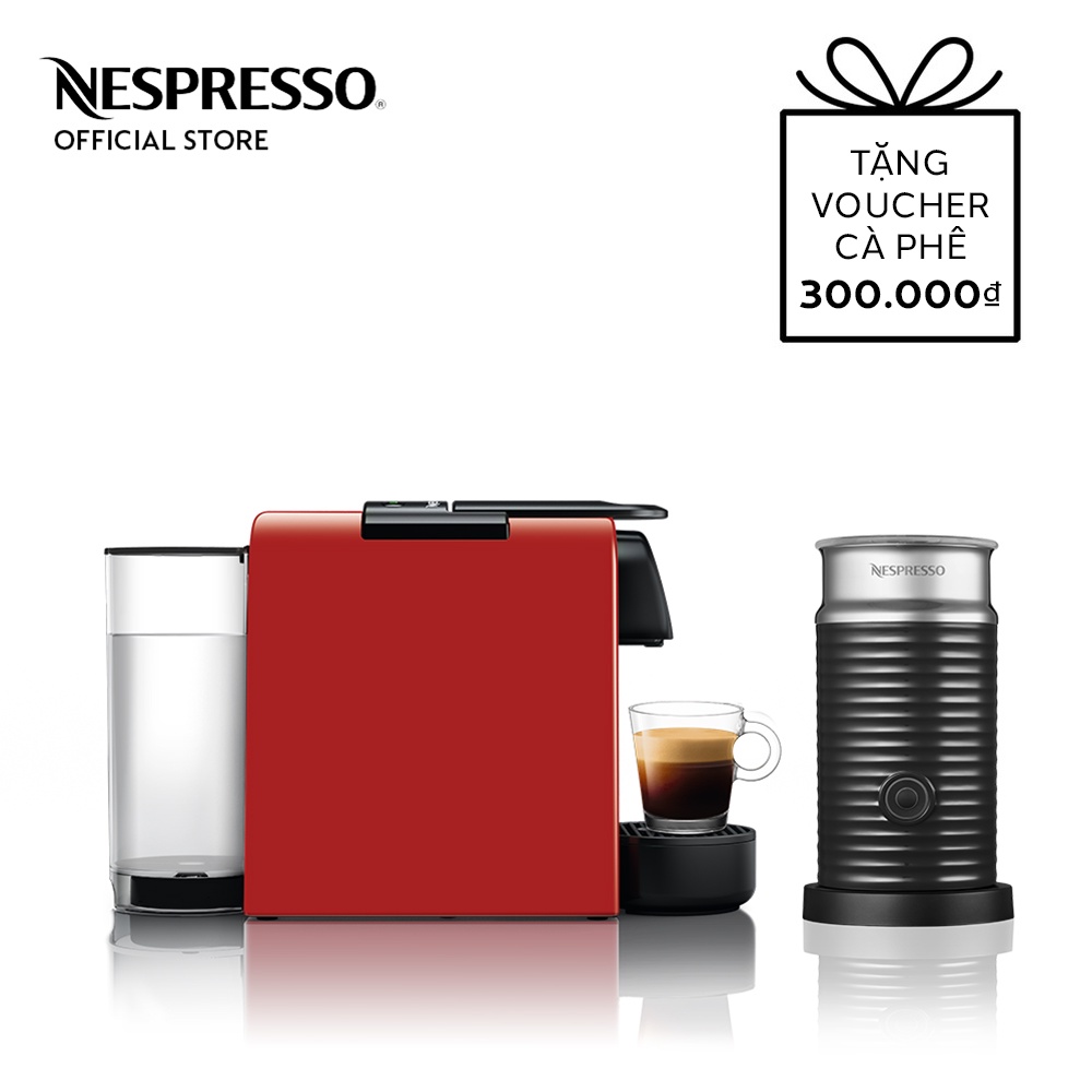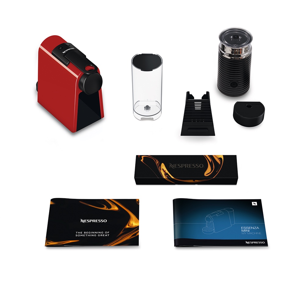 Bộ máy pha cà phê Nespresso Essenza Mini - Đỏ & máy đánh sữa Aeroccino 3