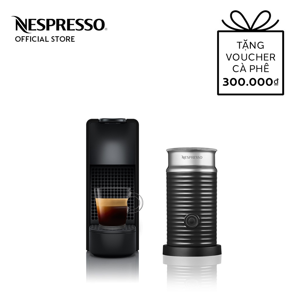 Giới thiệu [Mã ELHADEV giảm 4% đơn 300K] Bộ máy pha cà phê Nespresso Essenza Mini - Đen & máy đánh sữa Aeroccino 3