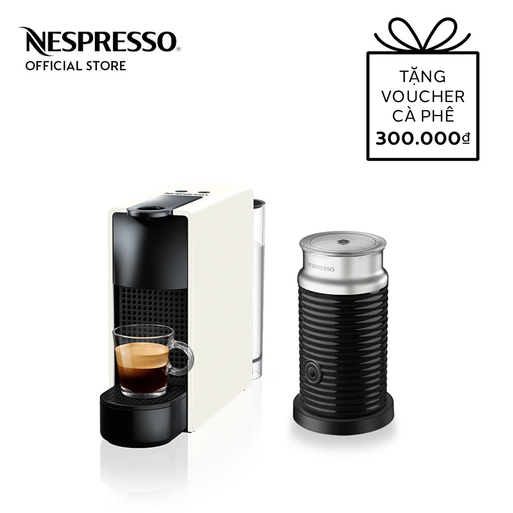 [Mã ELHADEV giảm 4% đơn 300K] Bộ máy pha cà phê Nespresso Essenza Mini - Trắng & máy đánh sữa Aeroccino 3