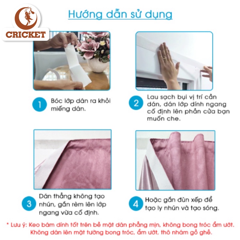 ✔️ Không dán rèm lên các bề mặt gồ ghề, xốp dán tường, giấy dán tường,..sẽ làm giảm độ bám dính của sản phẩm