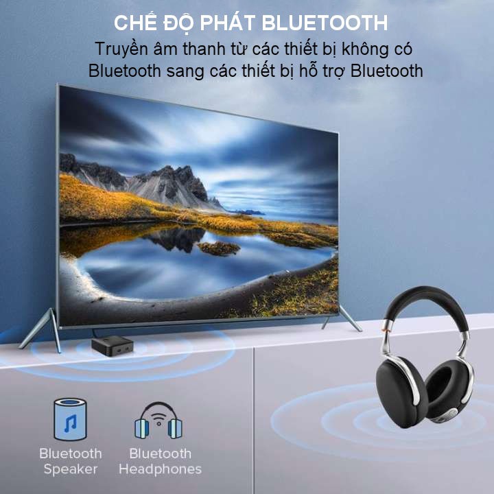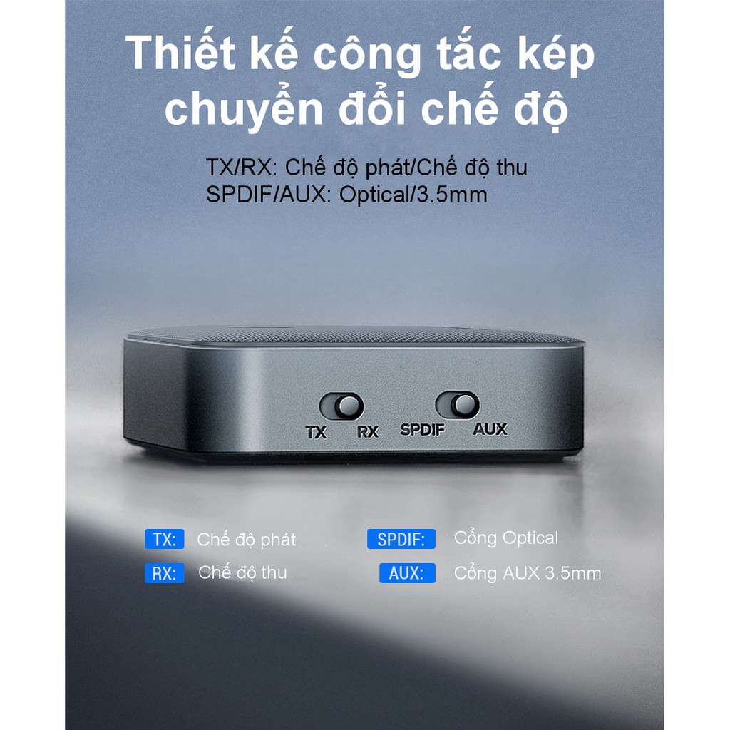 Bộ nhận và phát Bluetooth 5.0Chức năng hỗ trợ nhận và phát bluetooth cho các thiết bị âm thanh, cho phép kết nối Laptop/PC/đầu đĩa CD/Tivi/TVBox... với Loa/Amply/Tai nghe... và ngược lại