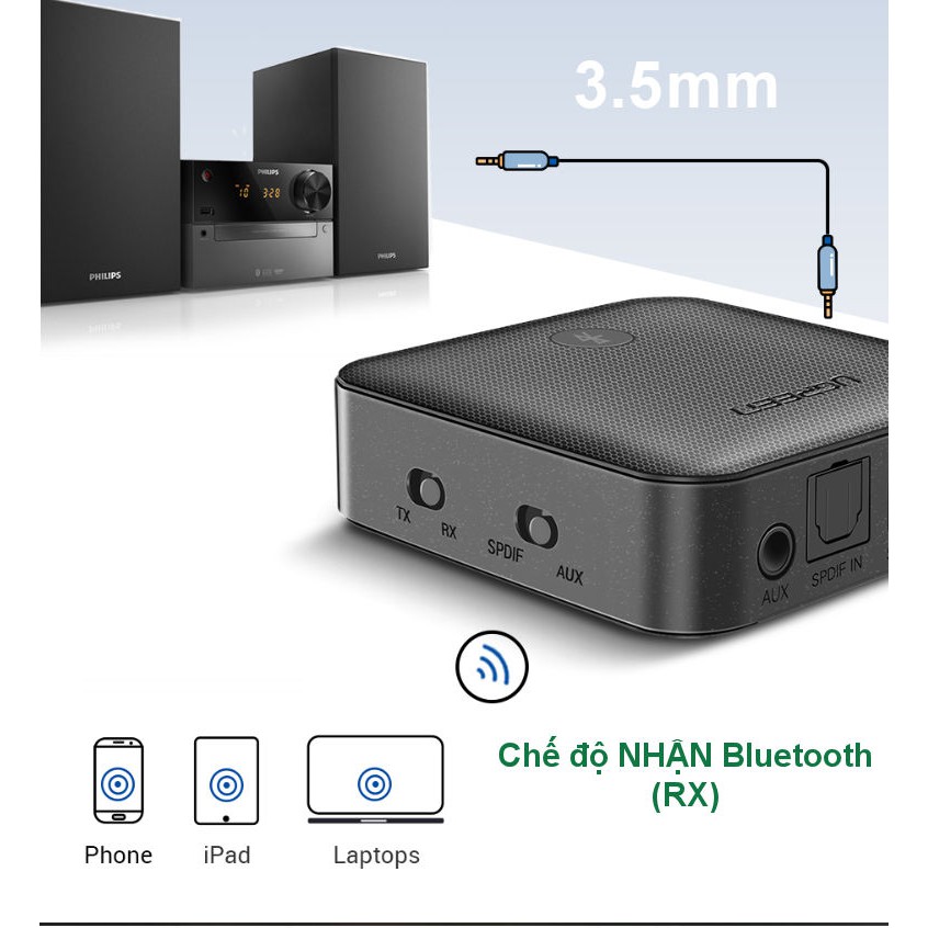 [Mã ELHACE giảm 4% đơn 300K] Bộ nhận và phát Bluetooth 5.0 hỗ trợ SPDIF Optical và atpX UGREEN CM144 70158