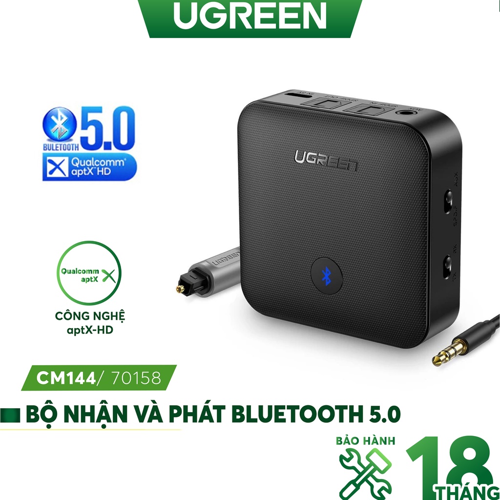 Giới thiệu [Mã ELHACE giảm 4% đơn 300K] Bộ nhận và phát Bluetooth 5.0 hỗ trợ SPDIF Optical và atpX UGREEN CM144 70158